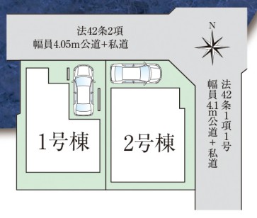- 北側4.05m(公道・私道)・東側4.1m(公道・私道)